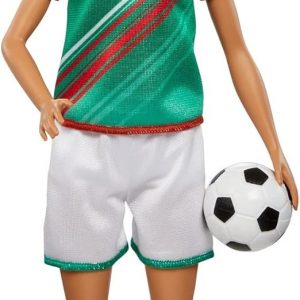 Barbie Careers Fashion Doll & Accessory, Soccer Player with Brunette Ponytail, #16 Uniform, Tall Socks, Cleats & Ball