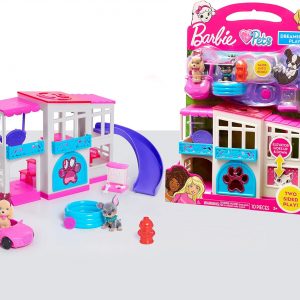 Barbie Pet Dreamhouse 2-Sided Playset, 10-pieces Include Pets and Accessories, 1-inch Pets, Kids Toys for Ages 3 Up