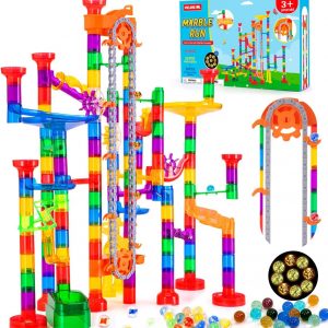 247Pcs Marble Run with Motorized Elevator, Construction Building Blocks Toys with 30 Glass Marbles and 30 Glow in The Dark Marbles, STEM Gifts for Boys and Girls