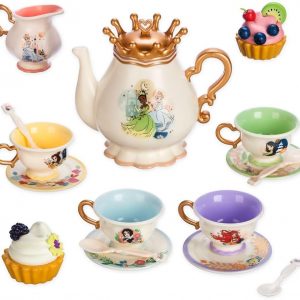 Disney Store Official Princess Tea Set with Sound Effects & Character Art Showing Snow White, Cinderella, Ariel, Belle, Tiana and More, 16-Piece Pretend Play Set with Music & Pouring Sounds for Kids