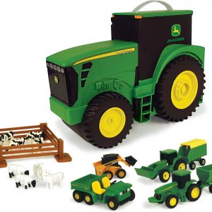John Deere Value Set and Carrying Case – Portable Tractor-Shaped Carrying Case with 10 Compartments – Farm Toys – 18 Count – 3 Years and Up
