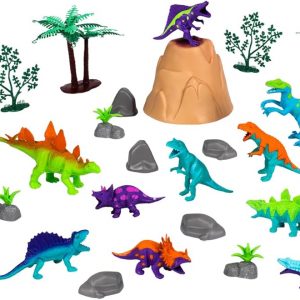 Wow in The World Bucket of Dinosaurs | Kids Play Dinosaurs | Learning Through Play | Includes 25+ Pieces: 11 Dinos, Trees, Rocks, Plants, Volcano, and 3 Wow Dinosaur Fun Fact Cards