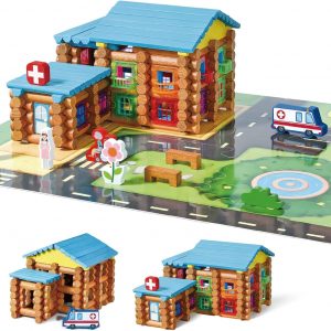 Wondertoys 239 Pieces Real Wood Logs Set Ages 3+, Classic Building Log Gift Set for Boys/Girls