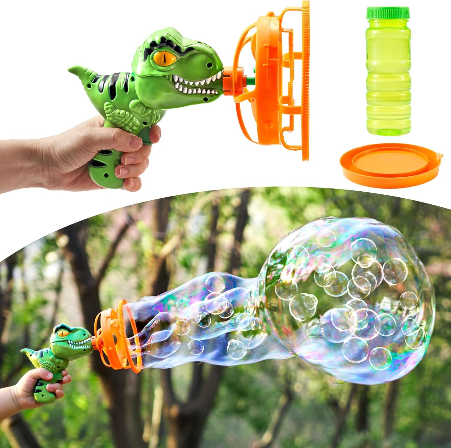 - OUTDOOR FUN FAVORITE: Our Dinosaur Bubble Gun with Solution is perfect for parties, parks, and backyard play, encouraging kids to enjoy fresh air and active fun. Our Dinosaur Bubble Gun is a fantastic and engaging gift choice for birthdays, holidays.