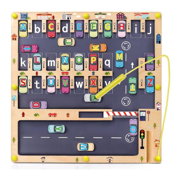 - Fun Parking Game: The magnetic maze board set features 26 car-shaped letter blocks. Inside the parking lot, there are designated parking spaces marked with different letters. Kids need to park the cars in the corresponding spaces based on the letters. This design makes learning enjoyable and motivates children to learn letters. When in use, please keep the magnetic pen and letter blocks vertical for optimal performance