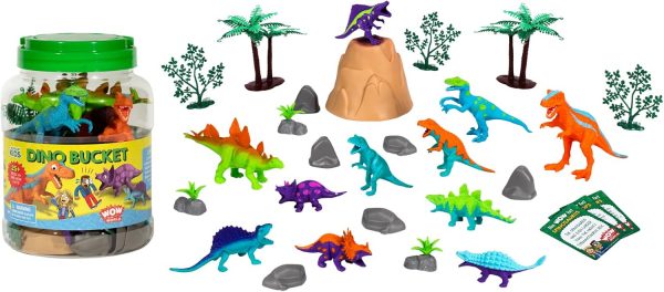 Wow in The World Bucket of Dinosaurs | Kids Play Dinosaurs | Learning Through Play | Includes 25+ Pieces: 11 Dinos, Trees, Rocks, Plants, Volcano, and 3 Wow Dinosaur Fun Fact Cards